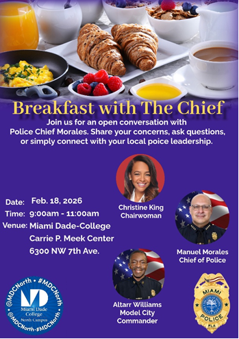 Meet your Brickell Commissioner and Commander at the next Coffee And Conversation on Wednesday, February 18, 2026 9:00am-10:00am . Click on the flyer for more info.